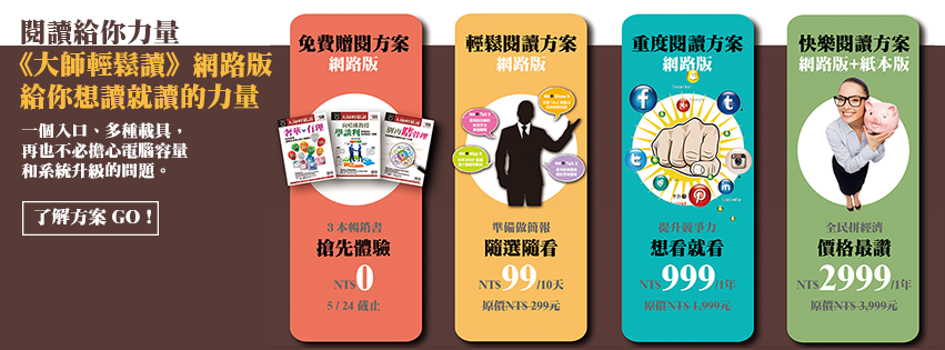 以上內容摘自:《大師輕鬆讀》NO.587 破解創業密碼[Read More] |