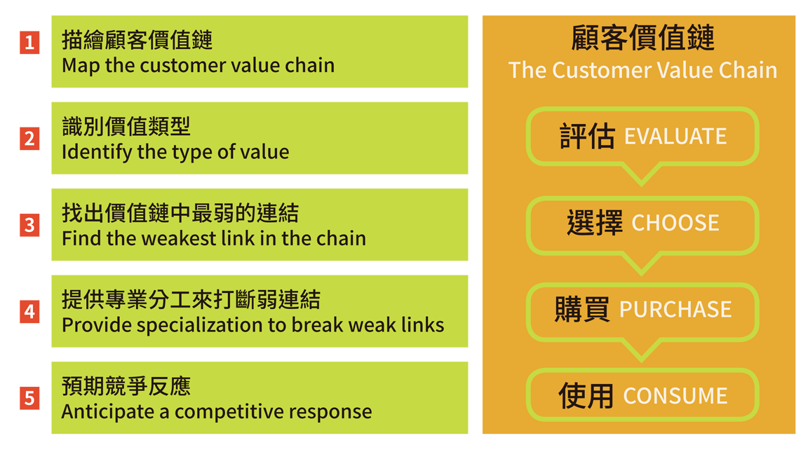 脫鉤背後的驅動力量是為顧客削減成本。因此,要在你自己的市場製造脫鉤,需要以下5個步驟: