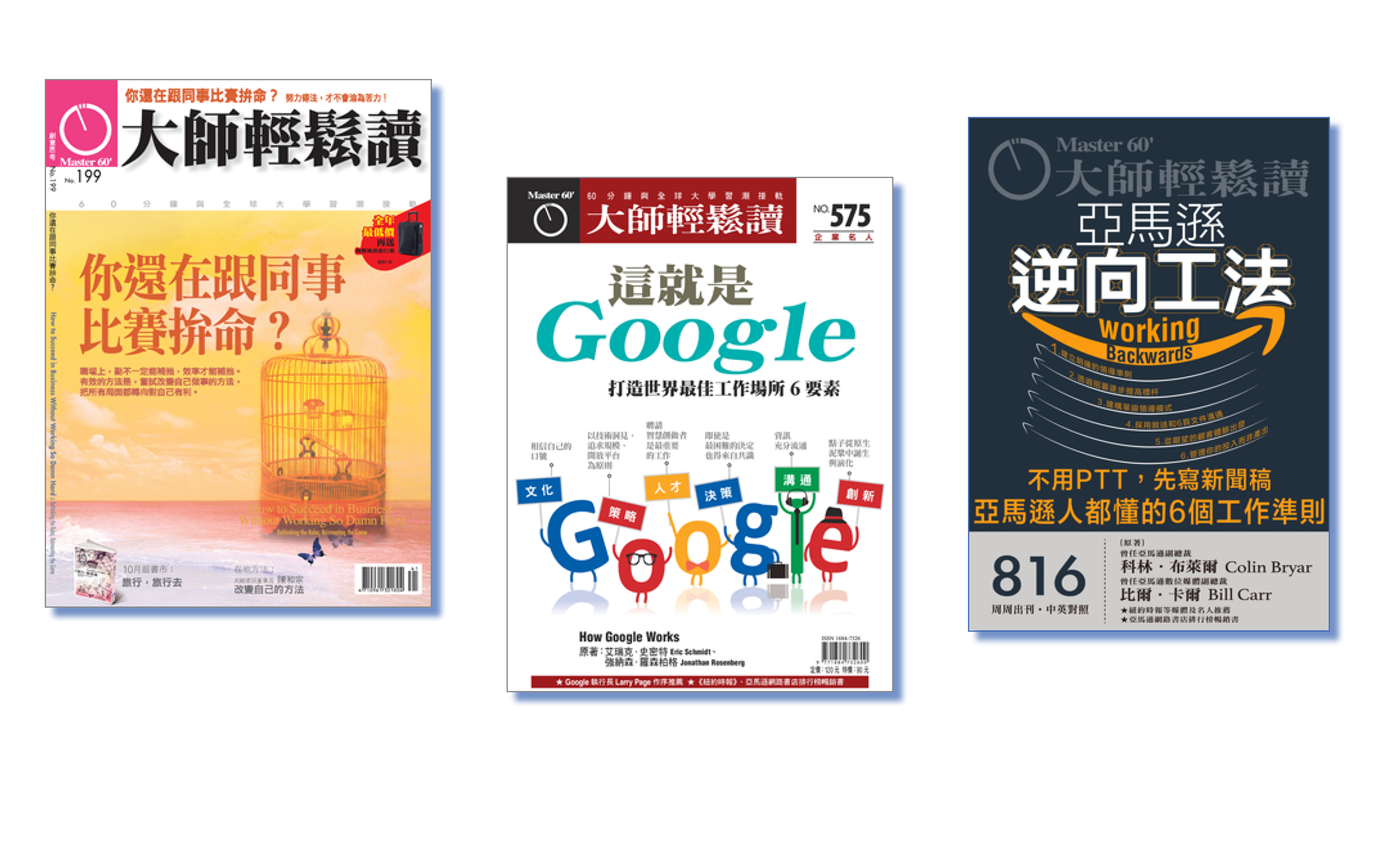 全世界每天都在思索在經營管理上如何創新、如何突破。這些經驗與心得不斷累積,造成經營管理方面的論述極度豐碩,多到令人無法靜下心來仔細選擇吸收。《大師輕鬆讀》讓我們能以最短的時間,廣泛了解世界上各行各業,各個管理階層的最新想法,實在是在吸收新知方面,最有意義,也最有價值的一件事。