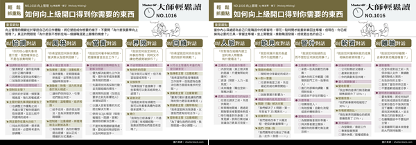 「你對工作不該只求『得過且過』,你應該感覺自己掌控著職業生涯的方向盤,並在與上級互動時感到自信、被重視和充滿力量。一開始,向上管理可能不是那麼自然,特別是你長期面對一個似乎講著不同語言的主管,或是他與別的同事更為合拍,都會讓你感到挫折,甚至懷疑自己哪裡做錯了。當你內心深處認為自己只是職涯中的乘客時,得花一點時間才能重新拿回主導權。但現在,你已經擁有必要的工具,能從上級那裡拿到你需要的東西。」──梅洛蒂.懷丁(Melody Wilding)