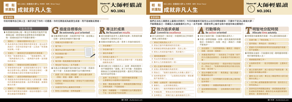 - 強烈渴望的目標──每天用現在式寫下你的目標(「我賺到……我領導……我過著……」,然後想像它們已經實現,感受成功的滋味。